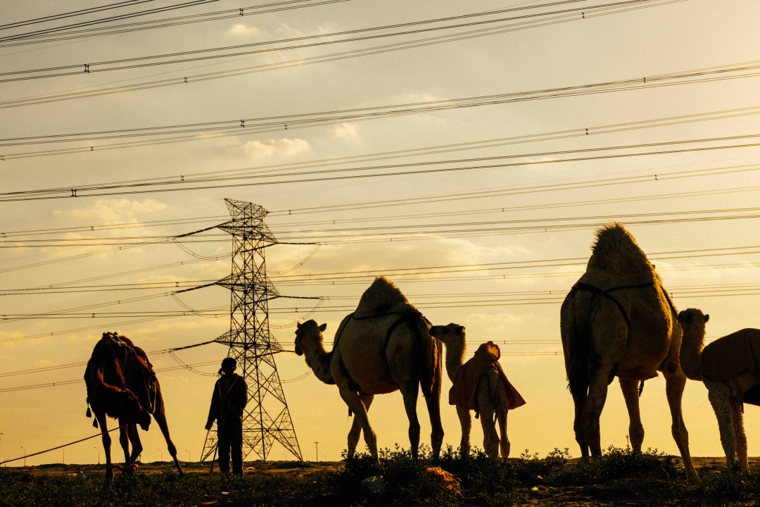 쿠웨이트 사막은 모든 것을 숨김없이 드러내는 공간이다. 바람에 깎여 형체를 잃어가는 땅, 죽은 동물의 흔적, 버려진 쓰레기 더미는 사막의 척박함과 솔직함을 드러낸다. 그 속에서 철탑은 인간의 흔적을 가장 뚜렷하게 드러내는 상징처럼 보인다. 사막과 철탑은 대조적인 존재 같지만, 한편으로는 묘하게 어우러진다. 마치 자연 속에 자리 잡은 인공적인 기념비처럼, 메마른 환경 속에서 철탑은 서 있다. 철탑 사이를 지나는 낙타 떼, 버려진 자동차 부품 그리고 그 위로 펼쳐진 끝없는 하늘은 마치 과거와 현재가 공존하며 끊임없이 이야기하는 듯하다.