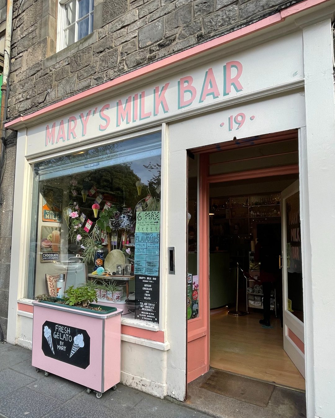 로열 마일에서 걸어 내려가면 그래스마켓 광장(Grassmarket Square)이 나온다. 그곳을 마주보고 있는 메리스 밀크 바는 수제 젤라토로 현지인과 여행자 모두의 사랑을 받는 곳이다. 쇼콜라티에 출신의 주인장 메리(Mary)가 매일 다른 맛의 젤라토와 초콜릿 메뉴를 선보이는 이곳에서 ‘몰트 다크 초콜릿’처럼 스코틀랜드 특유의 풍미를 살린 젤라토를 주문해보자. 비건 젤라토 또한 메뉴로 제공한다. 숍 바로 앞으로 펼쳐지는 웅장한 에든버러 성을 배경으로 인증 사진을 남기는 것도 잊지 말 것.