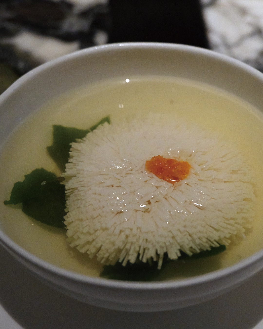 라틴아메리카의 풍미와 프렌치 조리법이 홍콩에서 만났다. 베네수엘라 출신의 오너 셰프 리카르도 차네톤(Ricardo Chaneton)이 이끄는 모노는 이 세 가지 요소가 조화를 이뤄 수준 높은 미식 경험을 선사하는 곳이다. 22석 규모의 아담한 다이닝 공간과 그에 맞먹는 면적의 오픈 키친, 그리고 그 안에서 분주하게 움직이는 여러 명의 요리사. 모노를 방문해 마주한 첫 장면은 ‘미쉐린 가이드 1스타 레스토랑’이라는 수식어에 더해 기대감을 높이기에 충분하다. 굴을 넣은 멕시칸 블루콘 인플라디타(Mexican Blue Corn Infladita, 얇게 펼친 옥수수 반죽을 구워 빵빵하게 부풀어오르게 만든 멕시코 전통 요리)부터 남미의 열대 과일로 만든 디저트 코스타리칸 사우어솝(Soursop)까지, 서양의 테크닉을 접목해 재해석한 남미의 식문화는 새로운 스토리텔링과 함께 접시에 담긴다. 하이라이트는 대니시 랑구스틴(Danish Langoustine). 에콰도르산 카카오닙스의 쌉쌀함 덕분에 극대화된 갑각류의 단맛이 절로 엄지손가락을 치켜 뜨게 만든다. 함께 나온 따끈한 마사 마드레(masa madre, 스페인어로 사워도)로 소스가 바닥을 보일 때까지 접시를 싹싹 닦아 먹고도 못내 아쉬워 입맛을 다실지도 모른다.