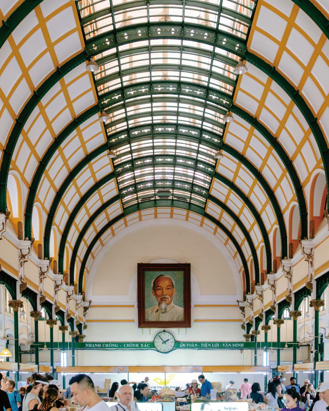 호치민 1군의 중심가, 붉은 벽돌로 지은 노트르담 대성당 바로 맞은편에는 노란색 건물이 하나 서 있다. 1891년에 완공된 사이공 중앙우체국이다. 프랑스 통치기 시절 이 우체국은 베트남은 물론 인도차이나 전역의 국제 우편물을 담당했다고 한다. 고딕과 르네상스 양식이 절묘하게 혼합된 건물은 이곳의 기능을 예술적으로 강조한다. 외벽에는 벤자민 프랭클린, 알레산드로 볼타 등 통신 발전에 기여한 과학자의 이름이 새겨져 있고, 입구 위쪽에는 전령의 신 헤르메스의 부조가 조각되어 있다. 우체국 내부에서도 130여 년의 역사를 고스란히 발견할 수 있다. 거대한 돔 형태의 아치형 천장은 구스타프 에펠의 솜씨. 아치 아래 양옆 벽면에는 1892년의 사이공 지도가 걸려 있다. 중앙 정면 끝에서는 호치민 주석의 대형 초상화가 방문객들을 맞이한다. 우체국은 오늘날 관광 명소이자 쇼핑 아케이드로 활약하고 있다. 우체국 직원들과 엽서를 쓰는 여행자, 기념품을 구입하려는 사람들로 시끌벅적하다. 나무로 된 옛 공중전화 박스는 기념사진의 배경이 되었지만, 그 안에서 고향으로 소식을 전하던 과거의 설렘은 여전하다.