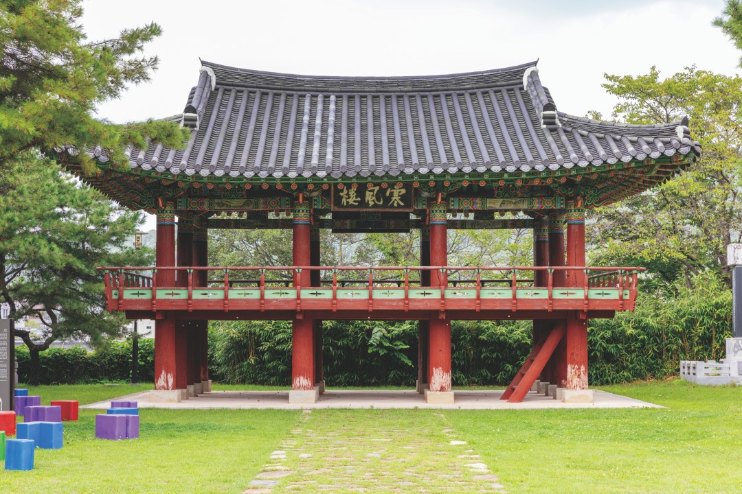 조선 시대에 건립한 누각으로, 정면 3칸, 옆면 2칸의 간결한 팔작 형태를 띤다. 한풍루의 현판은 한석봉이 썼다고 전한다. 임진왜란 때 전소되어 복원한 이후 여러 차례 보수를 거쳤다. 일제 강점기에 영동군으로 옮겨져 ‘금호루’라 불리던 것을 1960년대 한풍루 복구를 위한 무주 주민들의 자발적인 노력으로 지금의 자리로 이전했다. 한풍루를 마주하고 서면 누각 너머로 무주 읍내가 바라보이고, 주변에는 잔디밭이 조성돼 있어 휴식을 취하기에 좋다. 오늘날 한풍루가 자리한 구 지남공원은 예부터 지역 주민들의 휴식과 여가를 위한 장소로, 주위에 등나무운동장과 상상반디숲, 최북미술관 등의 문화·체육 시설이 자리해 있다.