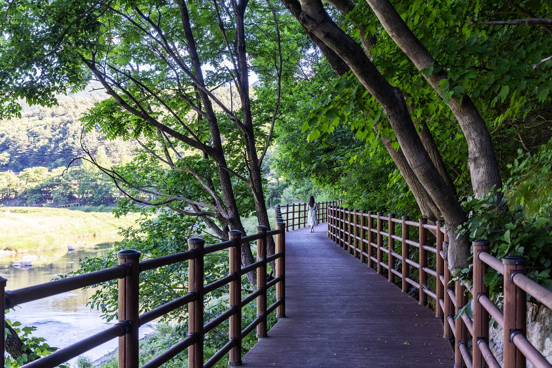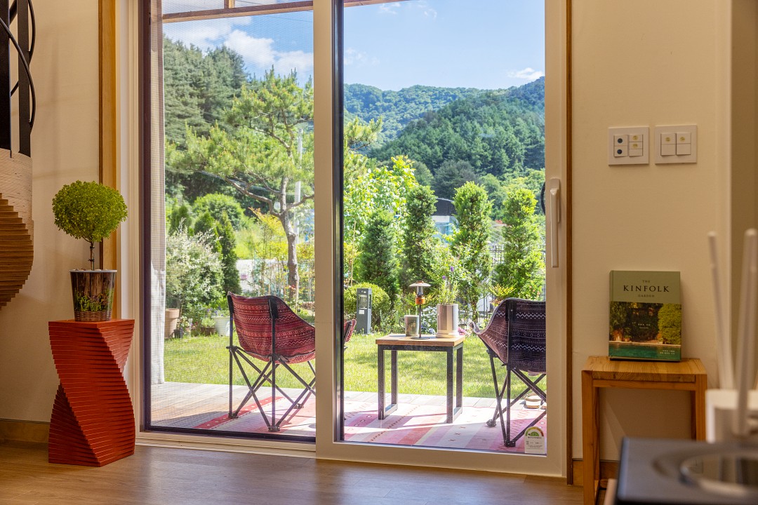 산내지 우디는 포천시 생태 보전 마을 언덕 위에 자리한 2층 목조 스테이입니다. 푸르른 숲과 새소리, 평화로운 마을 전경 덕분에 이곳에 들어오면 멀리 떠나온 기분이 듭니다. 호젓한 하천 데크길을 따라 산책을 하거나 가까운 계곡에서의 물놀이를 즐길 수도 있고, 스테이 안에만 머물며 자연 풍광을 즐길 수 있는 것도 장점입니다.