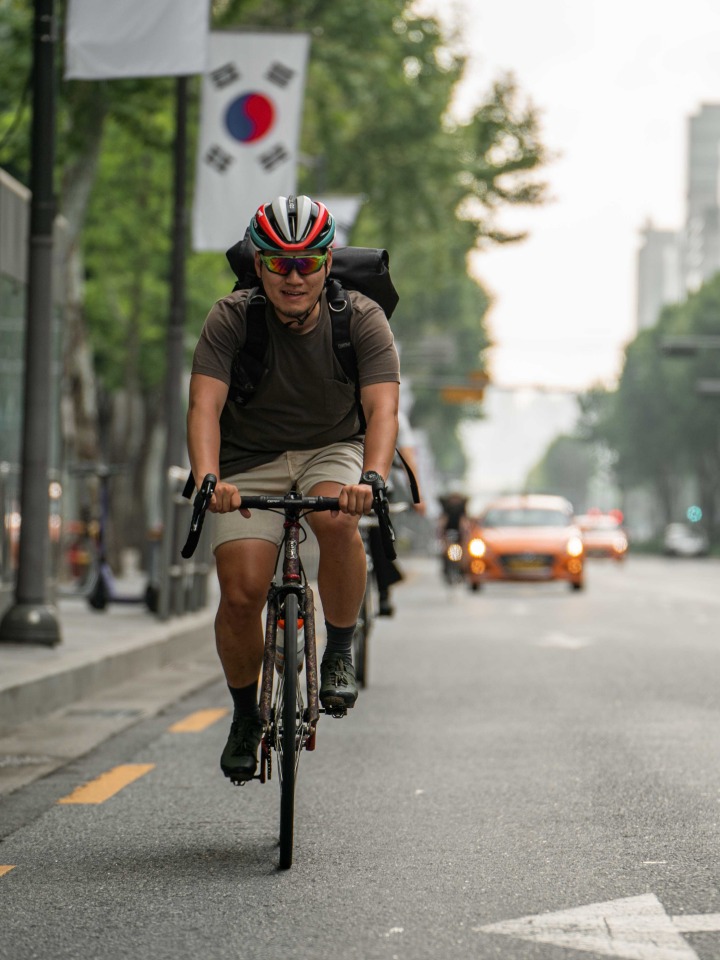 지금 함께 일하고 있는 친구도 2019년 인도네시아 자카르타에서 열린 대회를 통해 알게 됐어요. 대회 기간 중 한국인이 한 명 더 있다는 이야길 들었는데, 그때는 만나지 못했어요. 인스타그램 팔로우만 했죠. 제가 귀국했을 때 그 친구도 한국에서 자전거를 타고 있더라고요. 그렇게 서울에서 처음 만나 긱쿠리어에 합류했죠.