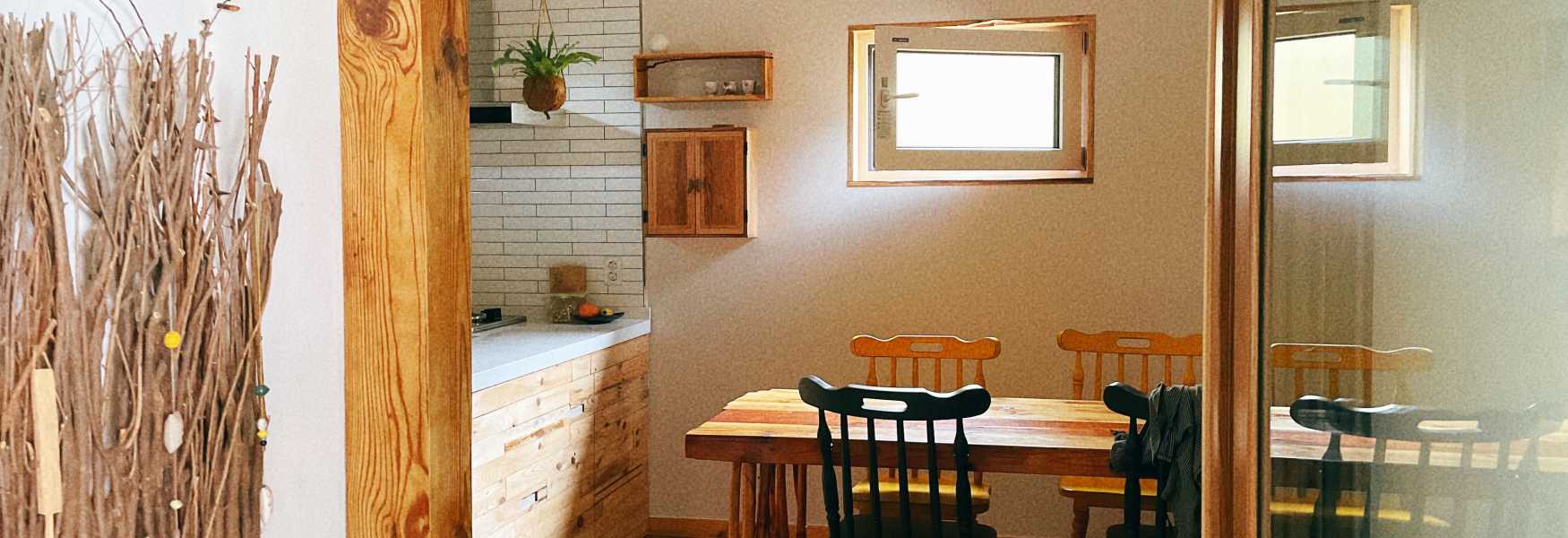 서론이 길었죠. 저희 숙소에는 감각적인 즐길 거리가 많지 않다는 양해의 말씀을 이렇게 장황하게 했습니다. 인터넷이 연결되고 시장도 가까우니 오프그리드까지는 아니지만 이곳에 머무는 이들이 자극적 요소가 적은 공간에서 잠시나마 고요히 머무는 시간을 갖길 바라요. TV는 없지만 구석구석 작가가 공들여 만든 오브제, 가구, 도자기, 조명 등이 자리해 있답니다. 한때 누군가에게는 귀한 공간이었을 낡은 집을 되살리고, 그 안을 채운 공예품을 통해 단순한 숙박을 넘어 건축과 공예, 일상이 따뜻하게 어우러지는 경험을 선사하고 싶어요.