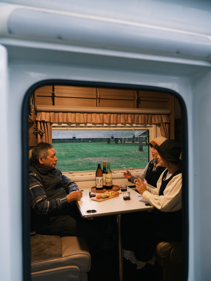 캠핑카의 최대 장점은 사이트마다 텐트를 설치해야 하는 번거로움에서 해방될 수 있다는 것이다. 캠핑카에 따라서는 화장실이나 샤워 설비까지 딸린 경우도 있지만, 몸집이 커질 수록 급수 등 관리하고 신경 써야 할 요소가 많아진다. 이번에 이용한 토요타 ‘로빈슨 771’의 경우, 롱 웨건 바디의 차량으로 일반 면허로 운전이 가능하고 비교적 운행의 부담이 적었다. 길이 4.98미터, 폭 2.1미터로 캠핑카 치고 차체가 크지 않아 좁은 언덕길을 달릴 때도 큰 무리가 없었다. 그 대신 딱 취침용 사이즈다. 아이 포함 최대 7인까지라고 설명되어 있지만, 쾌적하게 이용하려면 4인 정도가 알맞다. 에어컨과 히터가 장착됐고 작은 싱크대와 냉장고, 휴대용 버너 등을 구비하고 있어서 물을 끓이는 정도의 간단한 조리는 가능하다.
