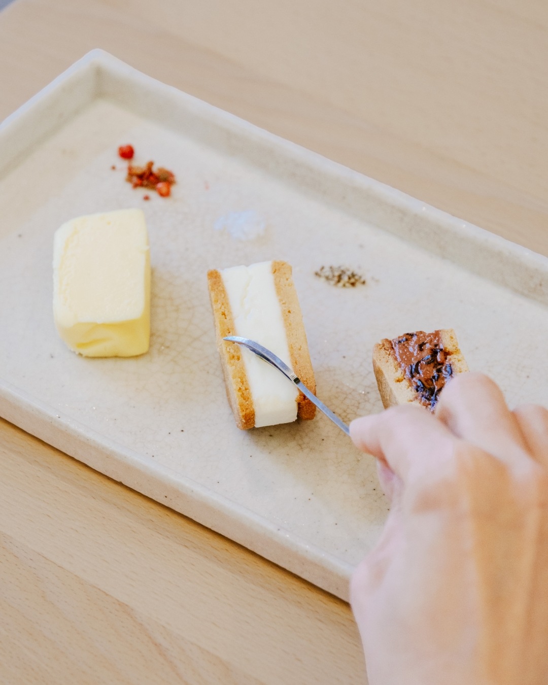 히다 후루카와의 또 다른 매력은 숨은 듯 자리한 로컬 가게다. 잠시 발품을 팔면, 의외로 뛰어난 카페와 숍을 찾을 수 있다. 그중 2021년에 히다에서 최초로 설립된 크래프트 브루어리인 히다노오쿠 브루어리(Hida no Oku Brewery)는 역사는 짧지만 일본 맥주 경연대회에서 여러 차례 수상한 곳. 히다의 숲에서 채취한 쿠로모지(黒文字) 나무의 향을 넣은 쿠로모지 다크 에일(Kuromoji Dark Ale)처럼 상쾌한 풍미의 맥주를 맛볼 수 있다. 세련된 감각의 디저트 숍인 니쥬시(二十四)에도 히다 후루카와 방문객들이 즐겨 찾는다. 짙고 풍부한 니쥬시의 치즈 테린은 단 한 조각 먹어도 혀끝에 긴 여운을 남긴다.