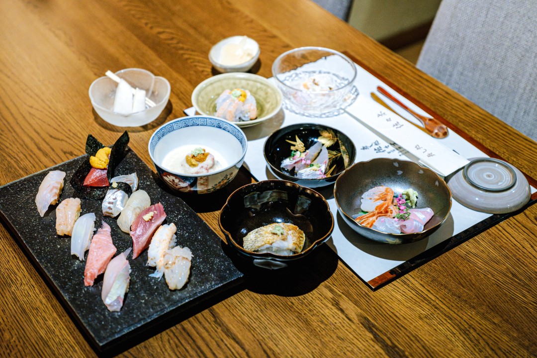 장인의 군더더기 없는 동작을 거쳐 정갈한 담음새로 올려진 오마카세 차림상은 작은 작품 같다. 한 점의 초밥이 입에 들어갈 때마다 그 맛이 사라질까 아쉽다. 고소한 맛, 단맛, 감칠맛, 기름진 맛, 담백한 맛이 나타났다 사라진다. 신선한 해산물은 자연이 주지만, 그것을 완벽한 맛으로 이끌어내는 건 사람의 손끝 아닐까.
