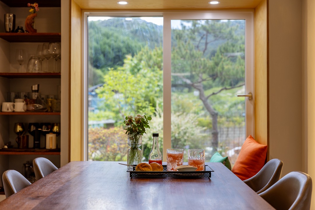 이곳은 운영자 부부가 노년에 살기 위해 직접 기획하고 지은 집인만큼 구석구석 세심한 손길이 묻어있습니다. 직접 수십 장의 도면을 그리며 공간을 계획했고, 자작나무 나선형 적층계단과 침대를 비롯한 다양한 가구도 직접 만들었습니다. 다양한 여행자의 여행 타입을 위한 고민도 엿보입니다. 별채 바비큐장과 빔 프로젝터, 블루투스 스피커 등은 가족, 친구들과 모처럼의 모임을 더욱 즐겁게 만들어 주고, 널찍한 테이블과 복층 개별 와이파이, 커피 드립도구는 몰입해서 할 일이 있는 이들을 위한 편리를 제공합니다. 자연 속 무해한 공간에서 무해한 여행이 될 수 있도록 제로 웨이스트를 지향하고 있는 곳이기도 합니다. 계절마다 다른 매력을 보러 다시 방문해도 좋은 산내지 우디! 온전한 쉼이 필요할때, 안온한 공간에서 자연 속 휴식을 경험해 보세요.