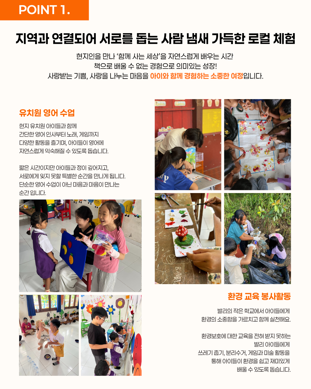 - 봉사 활동, 현지 관광, 문화 체험을 합친 뜻 깊은 발리에서의 일주일