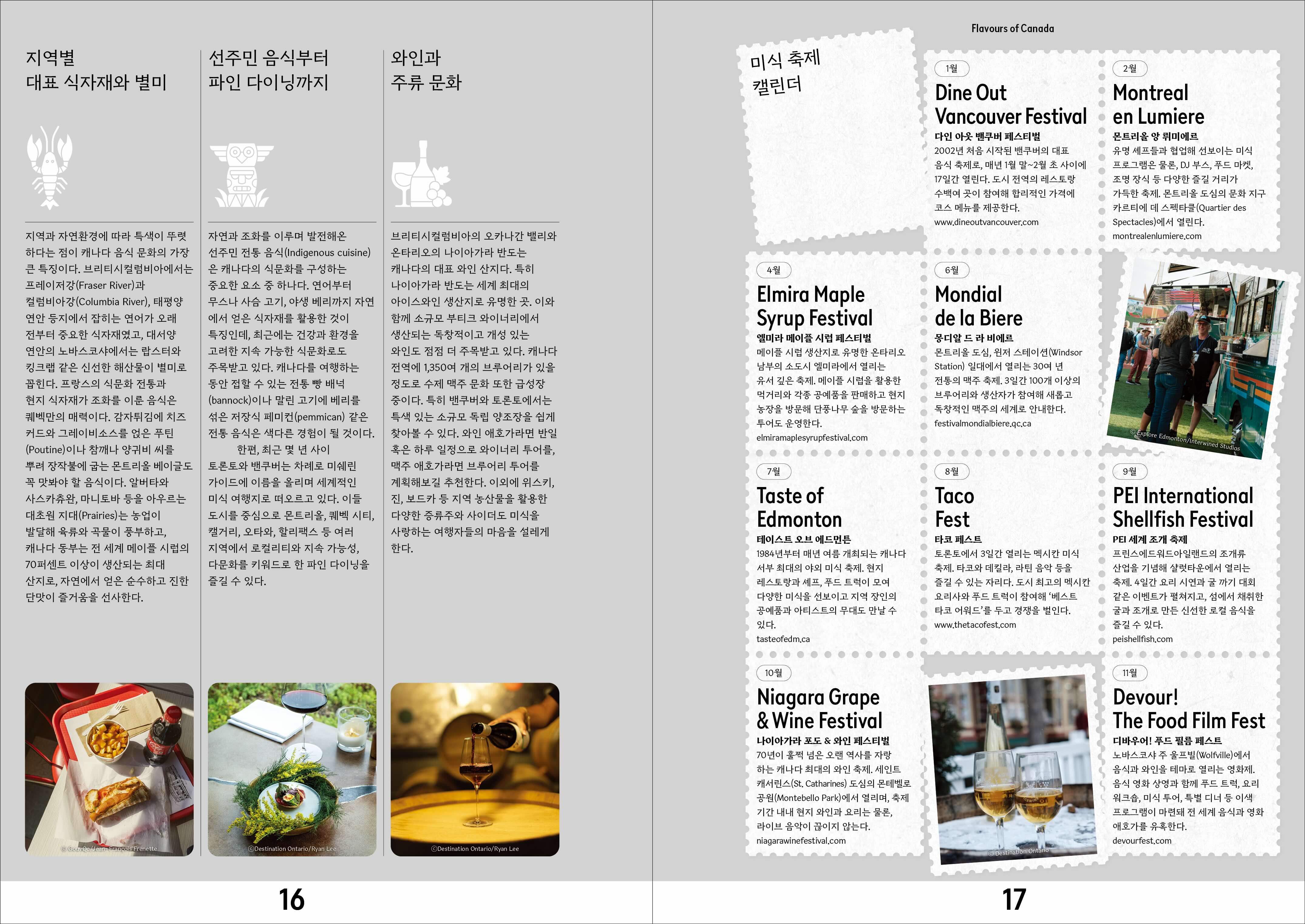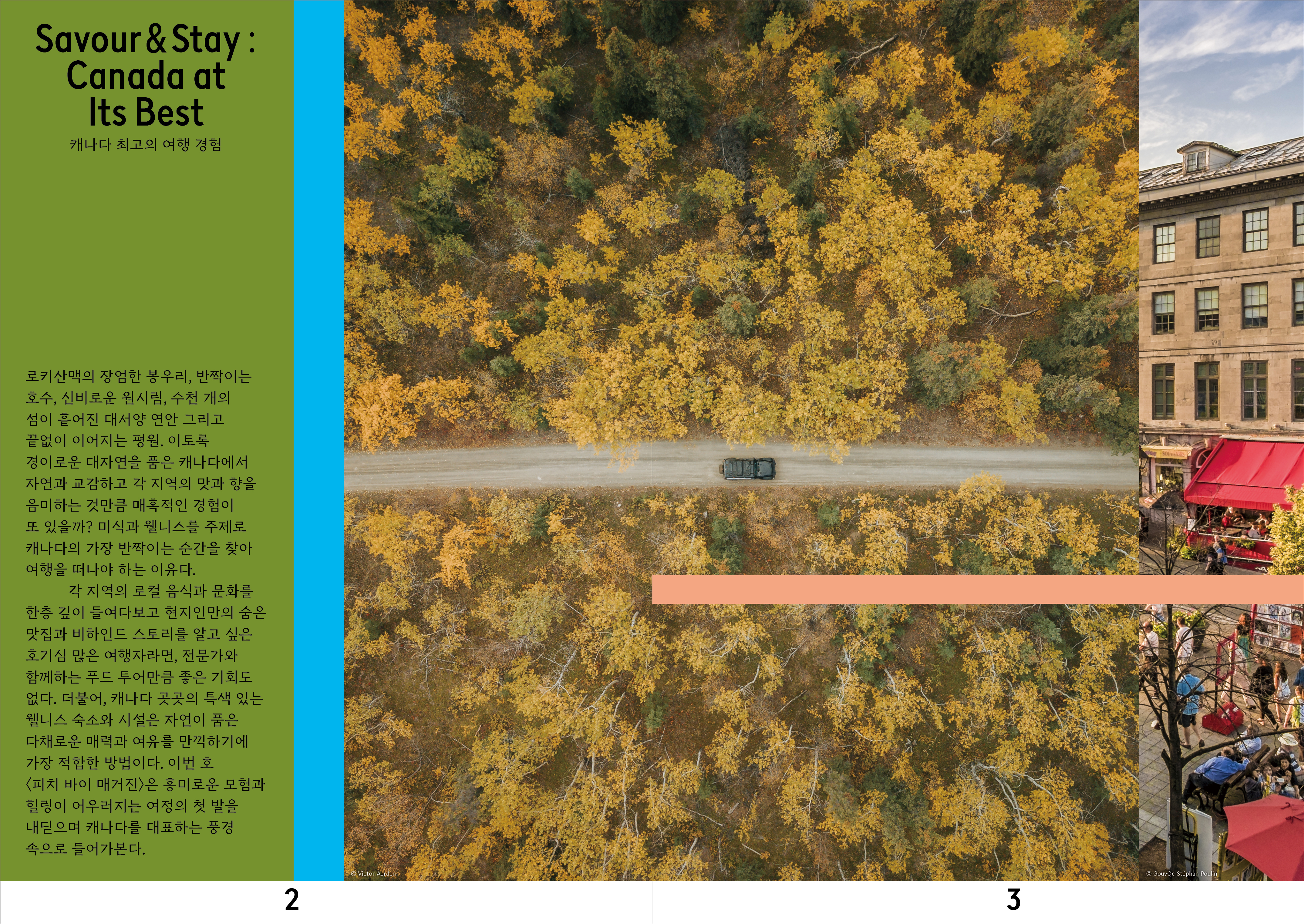 <피치 바이 매거진> 17호 스페셜 이슈는 미식과 웰니스 테마로 떠나는 캐나다 여행을 제안합니다. 로키산맥의 장엄한 봉우리, 반짝이는 호수, 신비로운 원시림, 수천 개의 섬이 흩어진 대서양 연안 그리고 끝없이 이어지는 평원. 이처럼 경이로운 캐나다의 대자연을 제대로 음미하고 누릴 수 있는 가장 매력적인 방법이니까요. 먼저, 각 지역의 로컬 음식과 문화를 경험하고 숨은 맛집과 비하인드 스토리를 찾아가는 50개의 푸드 투어를 통해 흥미진진한 맛의 세계로 안내합니다. 로컬 전문가와 함께 지역 별미, 개성 있는 크래프트 맥주와 와인을 맛보고 현지 마켓을 탐방하며 캐나다 각지의 미식은 물론, 문화와 역사까지 깊이 있게 들여다볼 수 있는 기회죠. 더불어, 캐나다의 다채로운 자연이 선사하는 힐링의 순간을 찾아 떠날 수 있습니다. 때론 광활한 바다와 웅장한 산봉우리를, 때론 평화로운 숲과 호수를 마주한 웰니스 숙소와 스파 시설을 선별해 담았습니다. 브리티시컬럼비아 주를 시작으로, 알버타 주, 퀘벡 주, 온타리오 주, 아틀란틱 캐나다 그리고 유콘 준주까지, 각 지역의 맛과 향을 즐기고 풍요로운 대자연이 품은 에너지를 만끽하는 특별한 여정을 함께하세요.