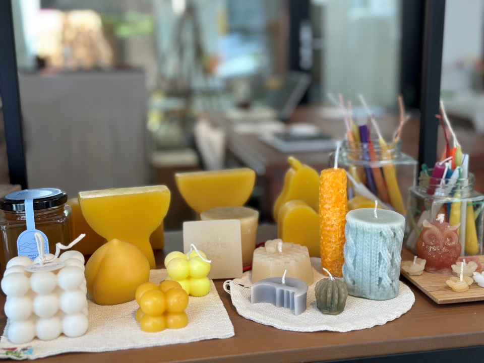 꿀벌이 생산하는 밀랍으로 밀랍초를 만들어 볼 수 있습니다. 밀랍초를 태우면 향긋한 꿀 내음 을 즐길 수 있으며 새집 증후군과 공기 정화에도 도움을 줍니다.