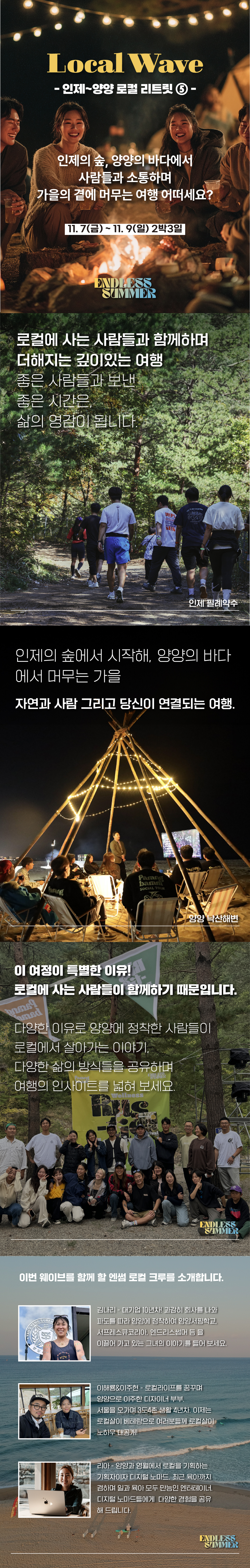 인제의 숲, 양양의 바다에서 사람들과 소통하며 가을의 곁에 머무는 여행. 인제-양양으로 2박 3일의 로컬 리트릿을 떠나보세요!