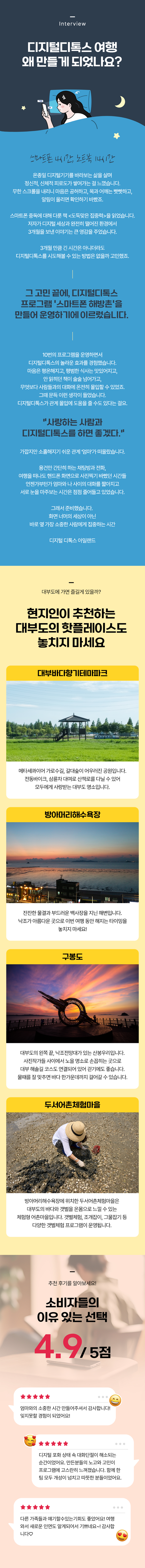 - 스마트폰 없이 온전히 여행과 서로에게만 집중할 수 있는 디지털디톡스 시간